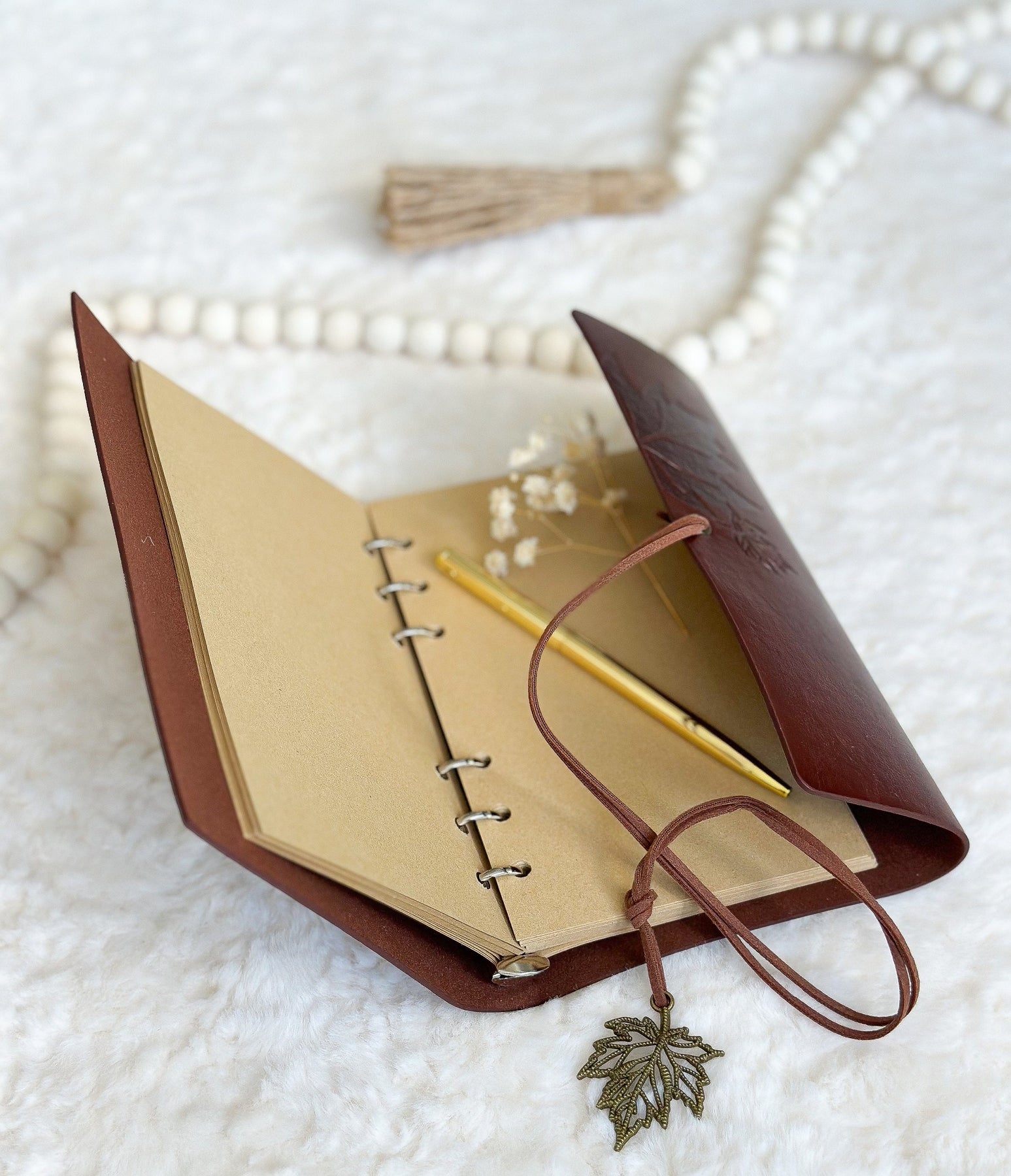 ❤️ Leather Journal, Refillable Notebook, 80 Sheets, 160 Pages with gold pen