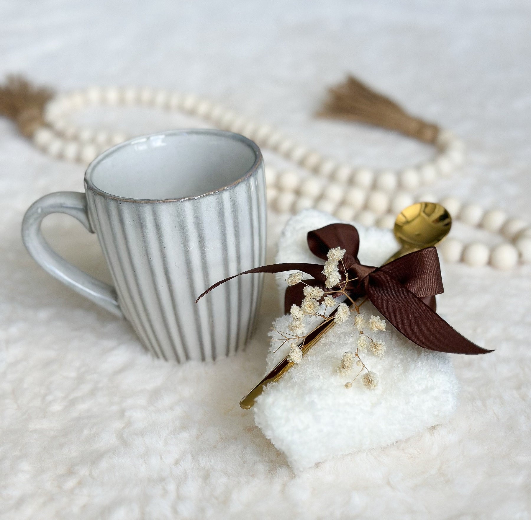 ❤️ 12 Oz Porcelain Cup for Hot or Cold Drinks with a gold spoon