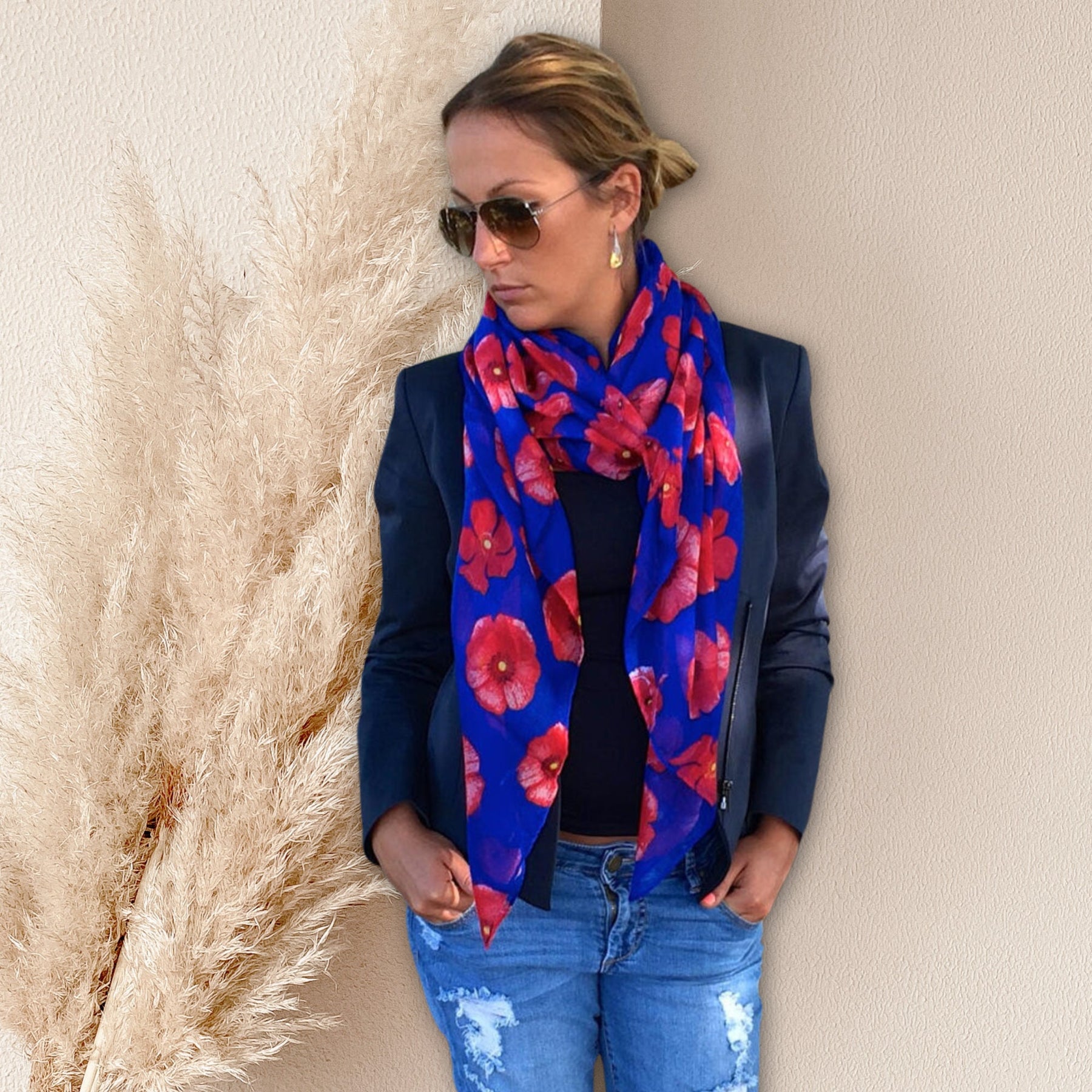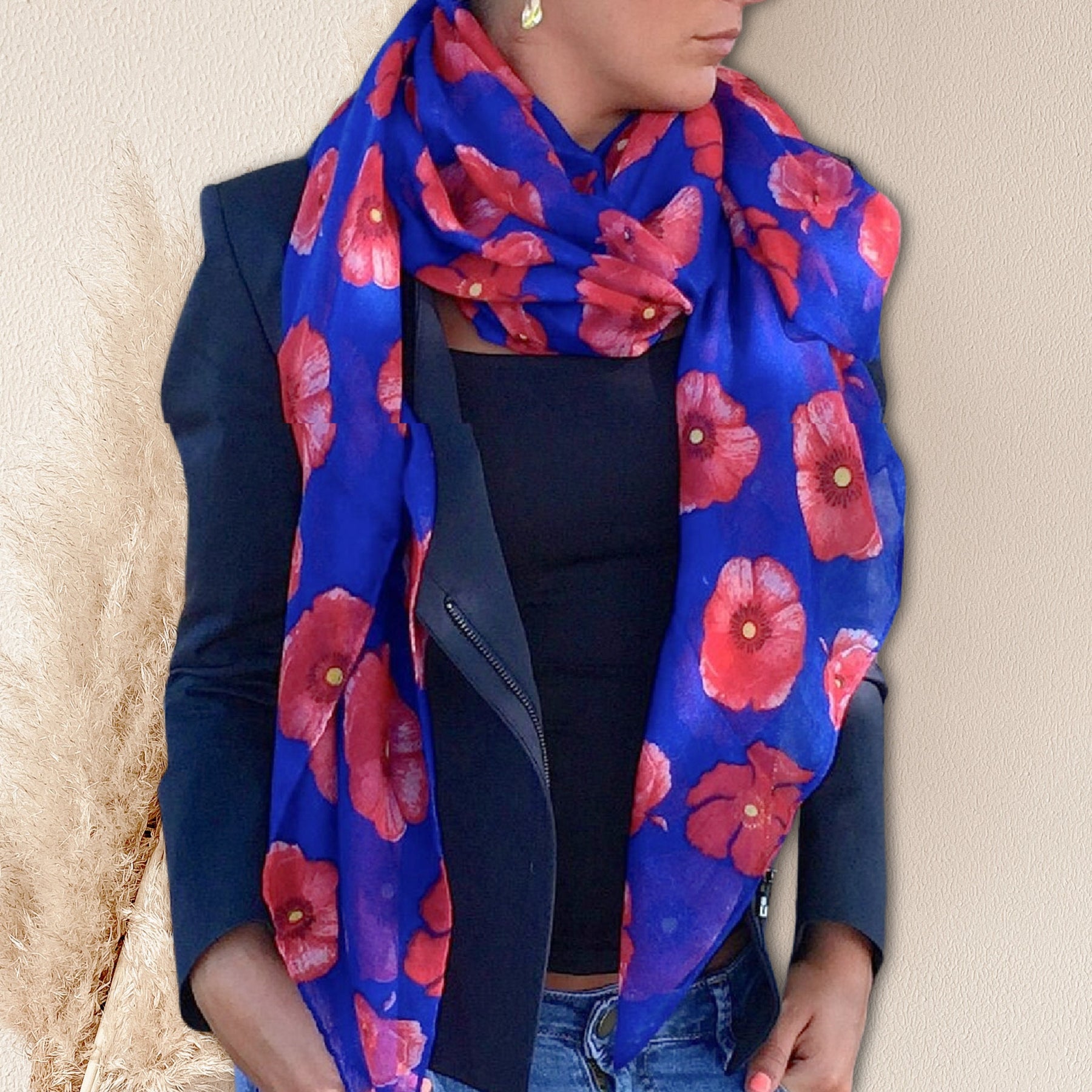 Royal Blue Scarf Poppies Summer Infinity Scarf Women Handmade Birthday Gifts for Her Personalized Gift For Women Wrap Shawl Mothers Day Gift